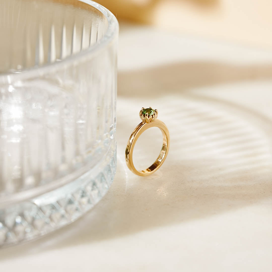 An iconic Botanica design, our classic Protea Ring set with a beautiful mint green Sapphire in the delicate and detailed Protea setting.