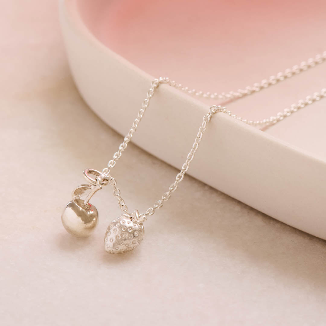 Cherry charm measures: 12.5mm wide at the widest point, 13mm long, excluding the bale.