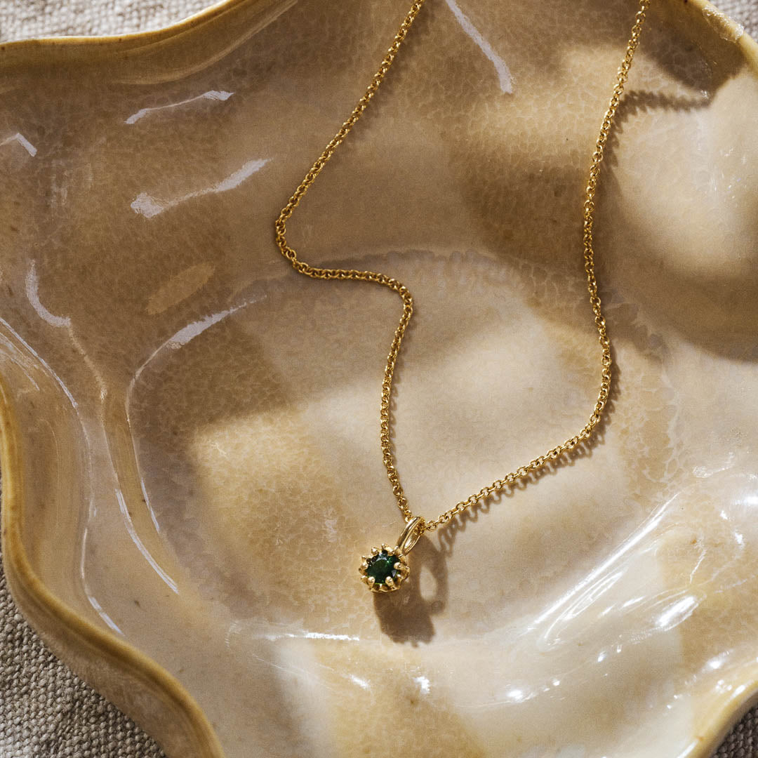 Our gemstone Protea pendant features detailed petals intricately carved to mirror the beauty of this iconic flower. Hand crafted in our Cape Town studio and set with a carefully selected tourmaline.