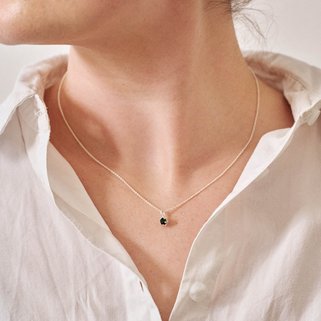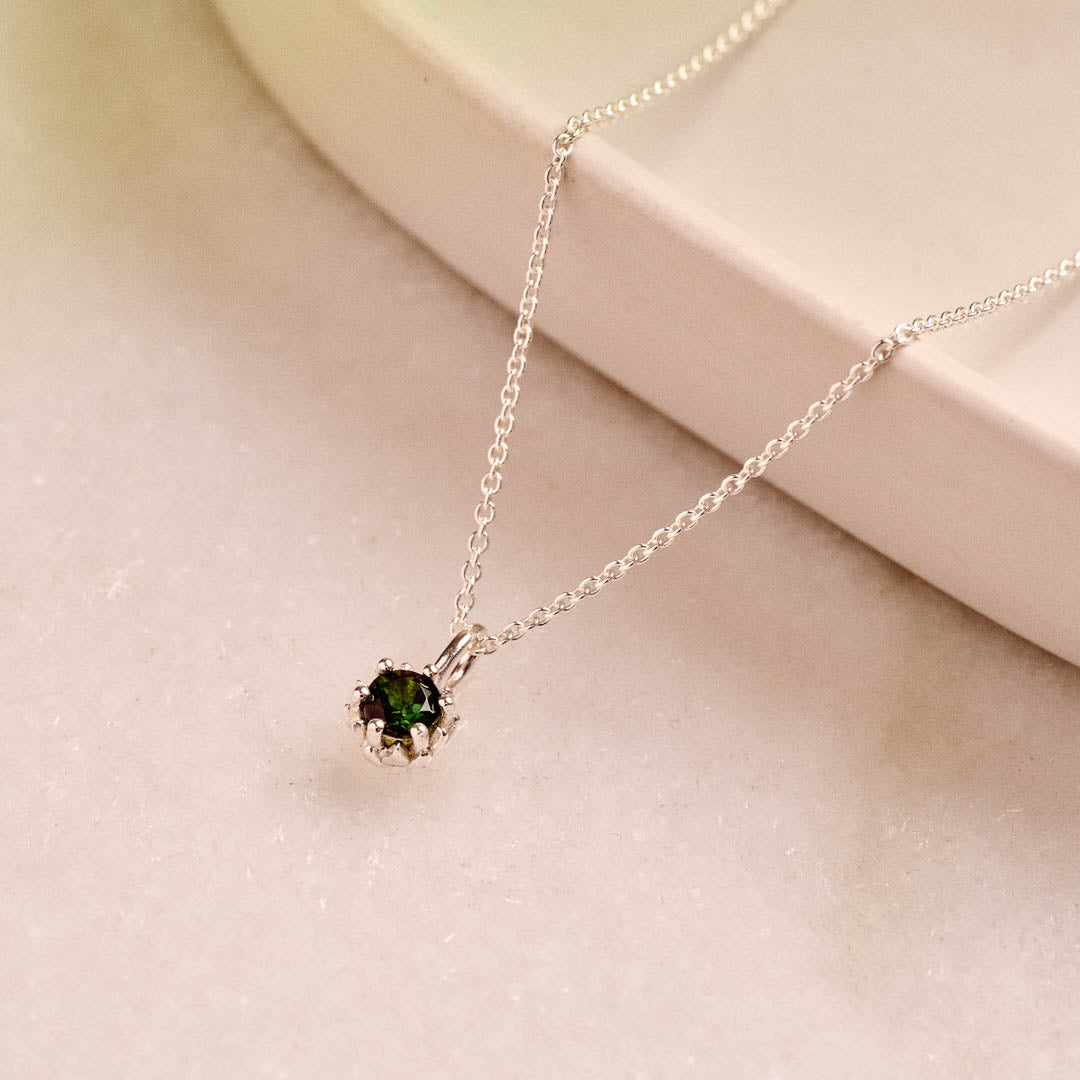 Our gemstone Protea pendant features detailed petals intricately carved to mirror the beauty of this iconic flower. Hand crafted in our Cape Town studio and set with a carefully selected tourmaline.