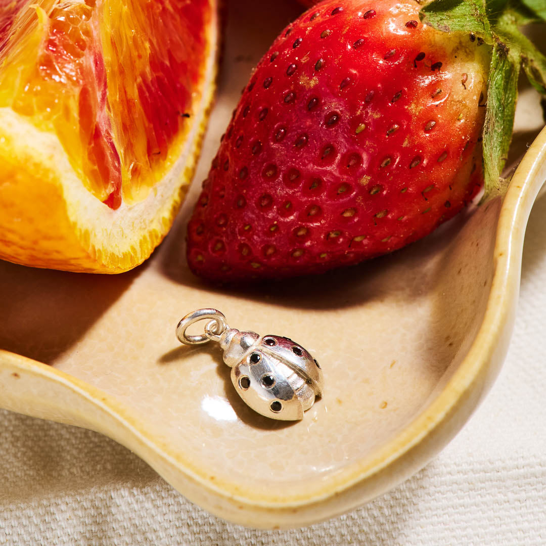 Our Ladybird Charm, a symbol of good luck, protection, and good fortune. Crafted with extra-special details, including black diamonds set in the wings. It makes a thoughtful gift for someone you want to wish a little extra luck or a personal talisman to carry your own quiet blessings.