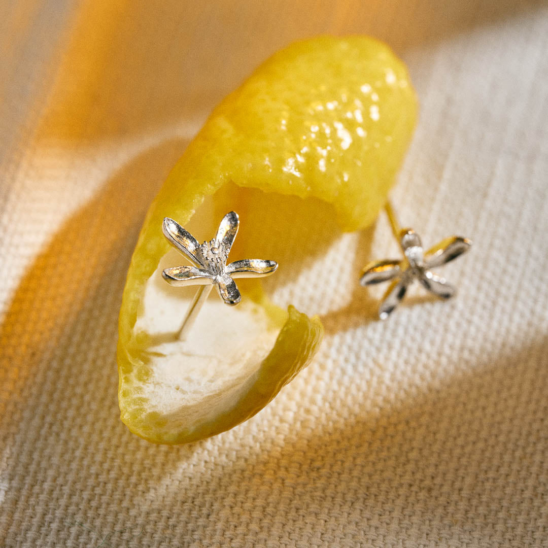 Lemon Blossom and Leaf Studs measure: 14mm in length, 12mm at the widest point