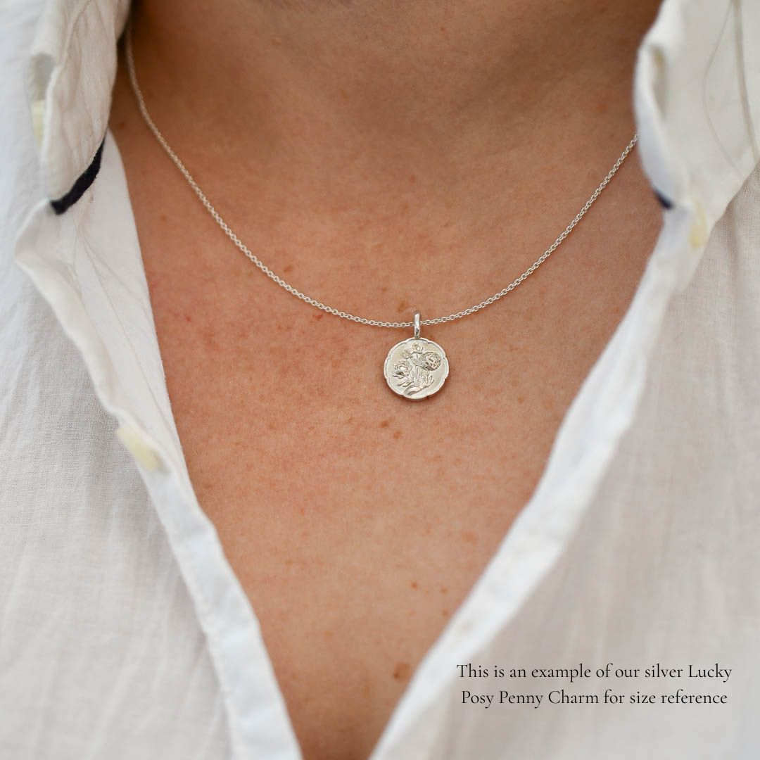 Please note when ordering the charm alone without a Botanica supplied chain: we have fitted these charms with slightly bigger bales to accommodate various chains but we cannot take responsibility for the fit or how the charms hang on chains not supplied by us.