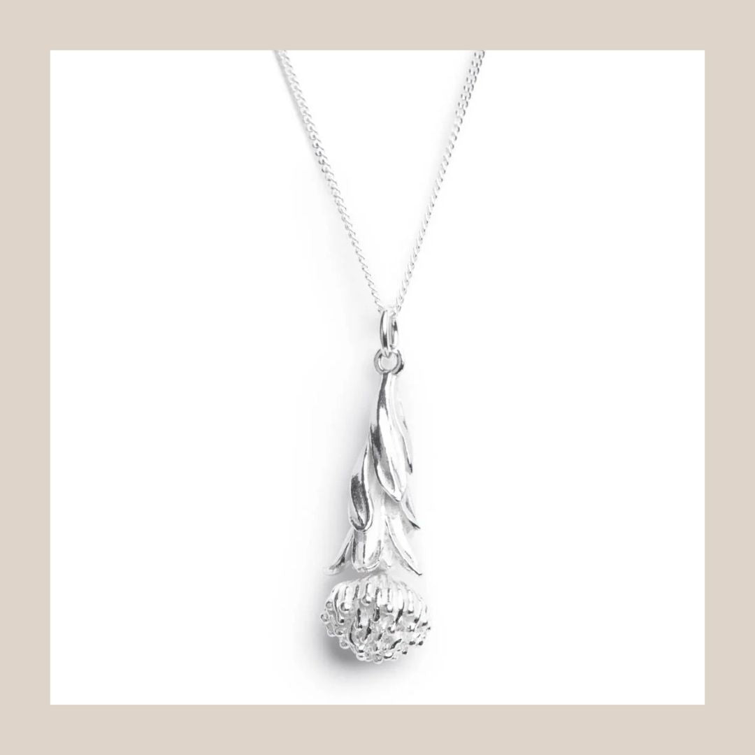 This pendant features the intricate leaves of the Protea Pincushion as well as the detailed Pincushion flower. The piece has been designed to allow the flower some movement to truly capture the feel of these spectacular plants.