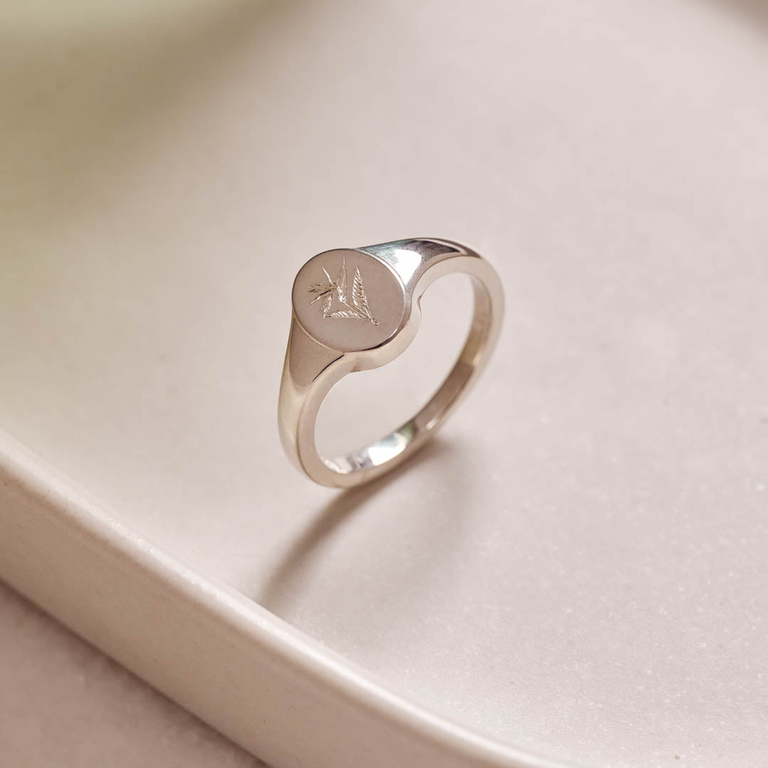 Strelitzia Wild Flower Signet Ring Sterling Silver
